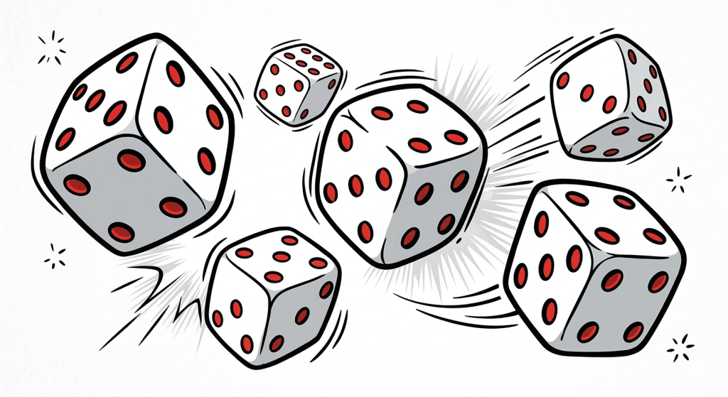 Abgesehen von aufwendigen Illustrationen oder Visualisierungen, deren Reproduzierbarkeit für künstliche Intelligenz noch eine große Herausforderung darstellt, kann auch die Generierung einfacher Grafiken ein verzerrtes Bild der Realität ergeben. Hier offensichtlich in der fehlerhaften Darstellung von Spielwürfeln.